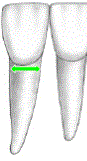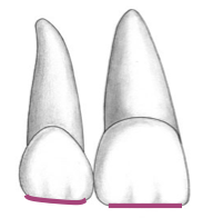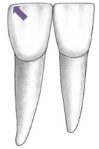 Maxillary Mesial view: Compare cervical line curvature of lateral and central incisors