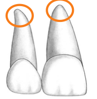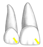 Maxillary Buccal view: Compare incisal edge form of central and lateral incisors