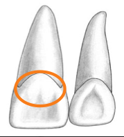 Maxillary Palatal view: Compare cingulum form of central and lateral incisor