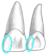 Maxillary Buccal view: Compare proximal contacts of central and lateral incisors