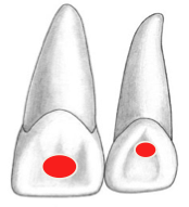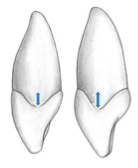 Maxillary Palatal view: compare lingual pit/groove of central and lateral incisors