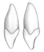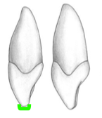 Maxillary Buccal view: Compare root apex form of central and lateral incisors