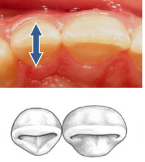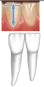 Maxillary Mesial view: compare crown size of central and lateral incisors