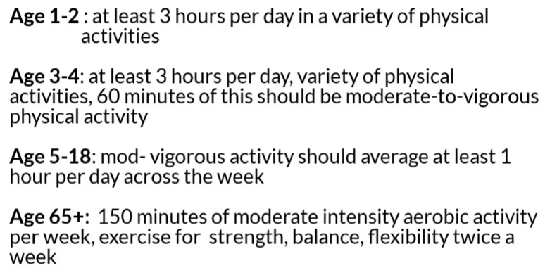 150 mins of moderate activity or 75 mins of intense activity per week.