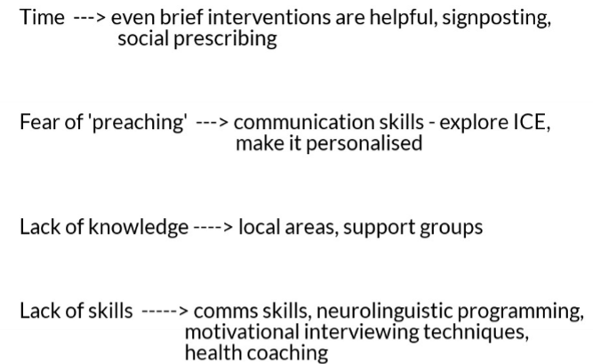Give leaflets, goal setting, local support and find something they enjoy.