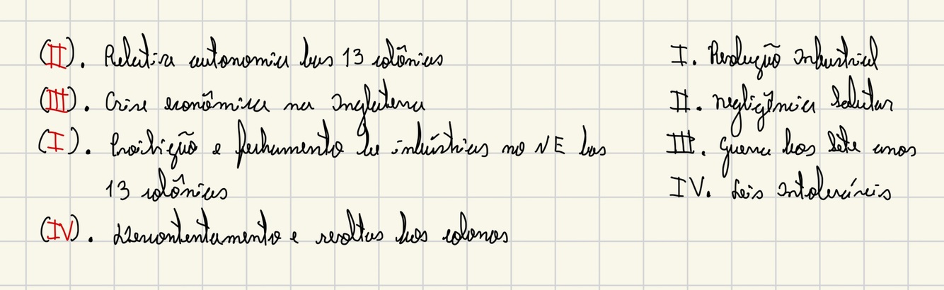 Obs: devemos lembrar que durante o século XVII a Inglaterra passava por muitos conflitos internos, o que impedia que o país realmente explorasse as 13 colônias. No entanto, após a Revolução Gloriosa a Inglaterra adquiriu estabilidade política interna e passou a explorar mais as 13 colônias, além de também necessitar de capital após a Guerra dos Sete anos com a França.