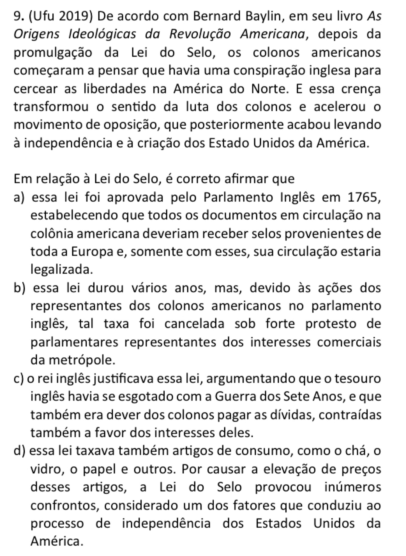 Obs: embora a Lei dos Selos tenha sido revogada, ela não durou vários anos.
