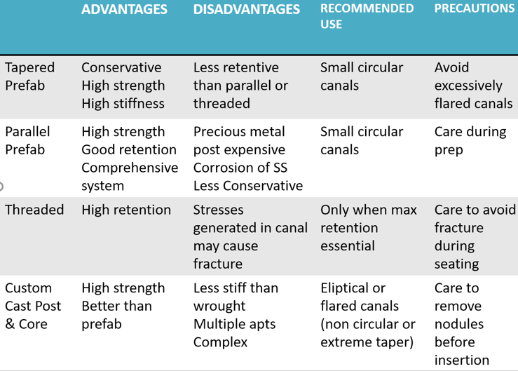 -Incisors and canines - post unnecessary if sufficient coronal dentine is present