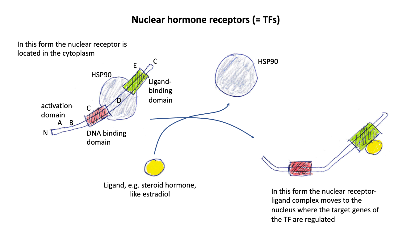 Nuclear Hormone Receptors: Is a TF located in the Cytoplasm bound by an HSP90.