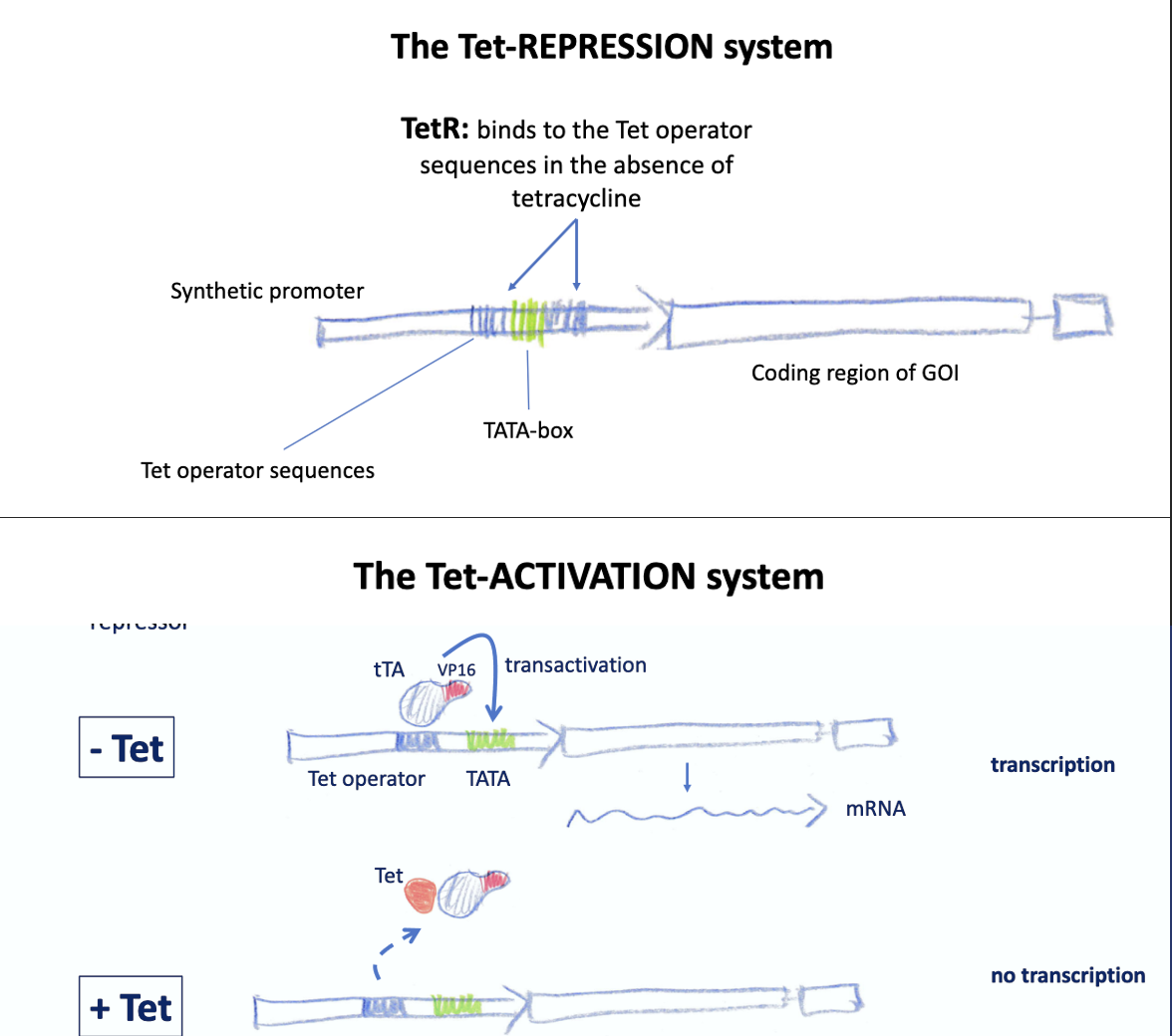 TetR is fused to VP16 (activation domain) –> tTA (tetracyclin transactivator).