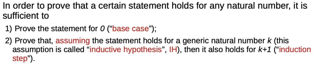 A proof technique which exploits the conctruction of the set of natural numbers. In its basic formula it says: