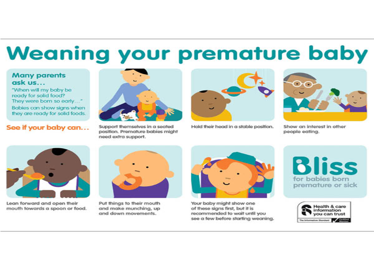 Introducing your baby to solid foods, also referred to as weaning or complementary feeding, starts when your baby is around 6 months old. Your baby should be introduced to a varied diet, alongside their usual breast milk or first infant formula