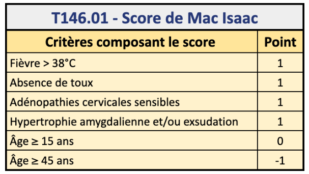 Un score >=2 nécessite un TDR (nb : germe streptocoque du groupe A (=strepto pyogenes))