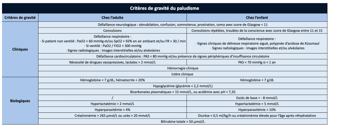 Critères d’hospitalisation paludisme