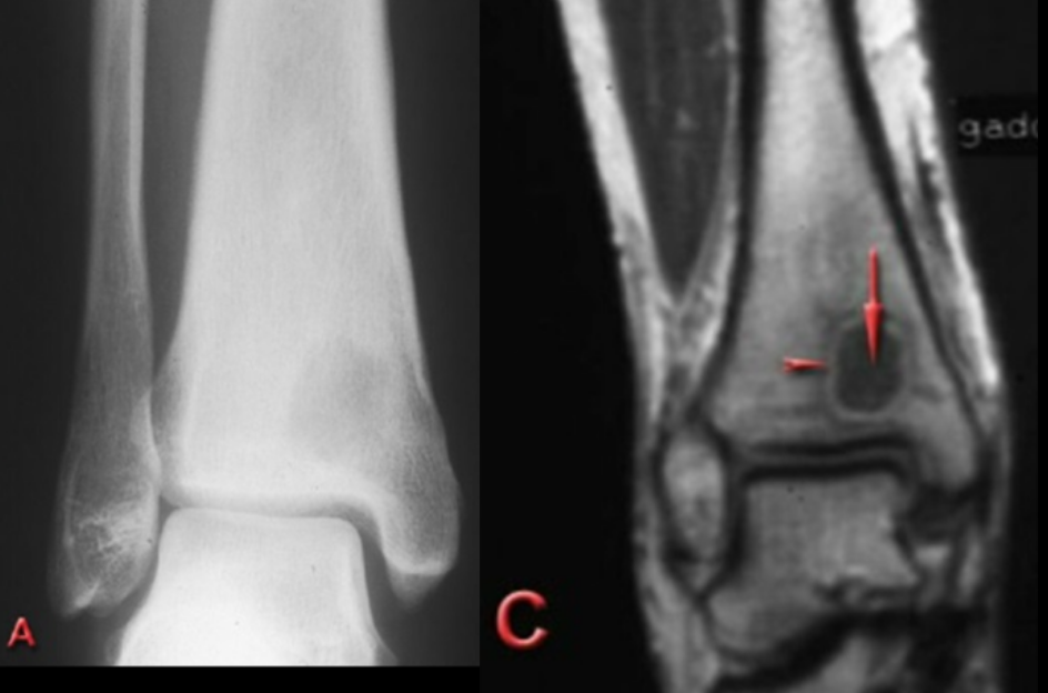 geographic lytic lesion in metaphysis with acute pain