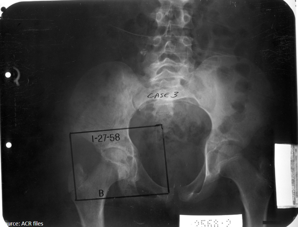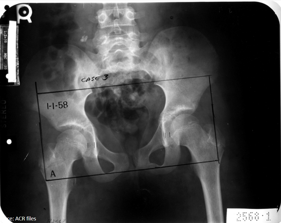 Based on the evidence of avascular necrosis in her femoral capital epiphysis, what is the diagnosis?