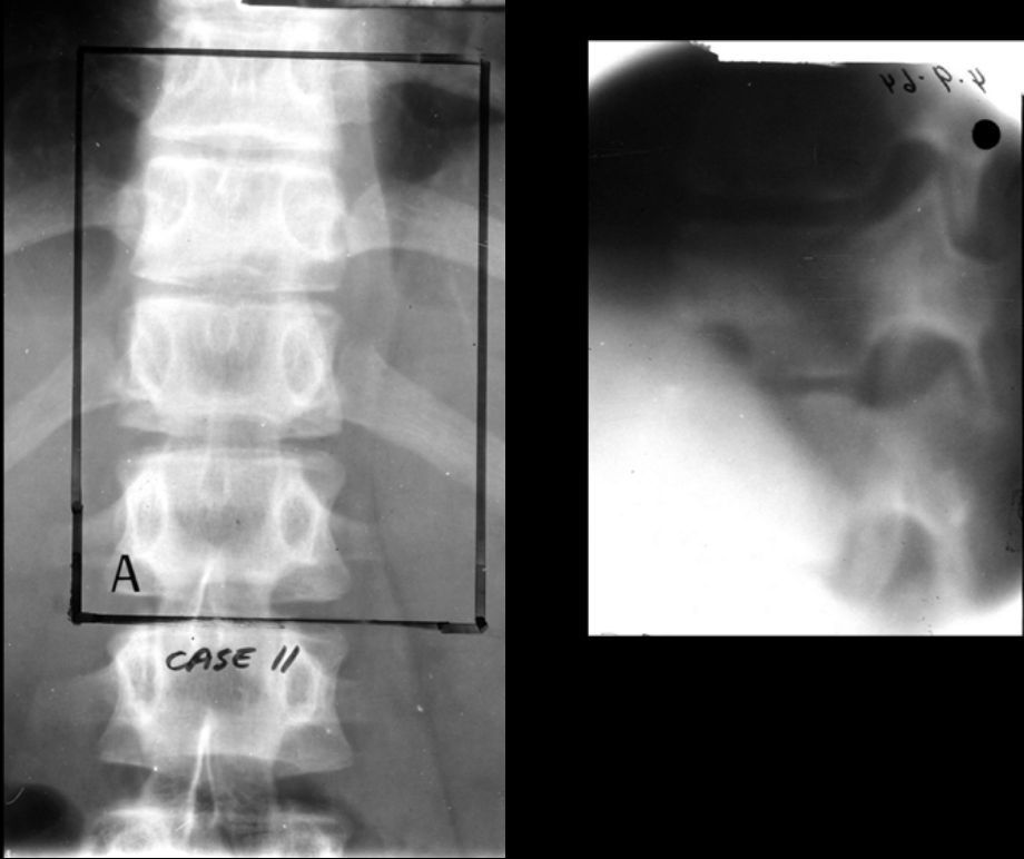 What is seen on these radiographs that suggests spondylodiscitis?