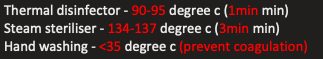 infection control: different temperatures for 3 main stages of instrument cleaning process?