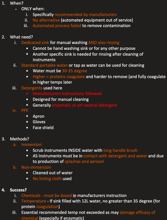 Manual cleaning of instruments: