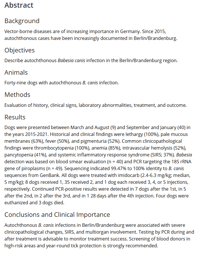 Conclusion: B canis in Berlin area is associated with severe clinicopathologic changes, SIRS and multi organ involvement