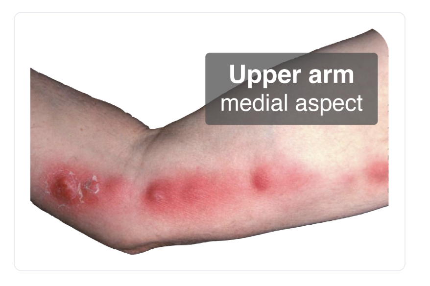 Started as a single bump on his right forearm that has been oozing fluid. Now progress up the lymph channel. No fever. Pt is a gardener/ag worker. What dx? What tx?