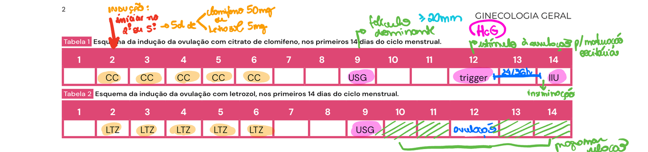 - indução da ovulação com LETROZOL ou CLOMIFENO por 5 dias do inicio do ciclo menstrual.