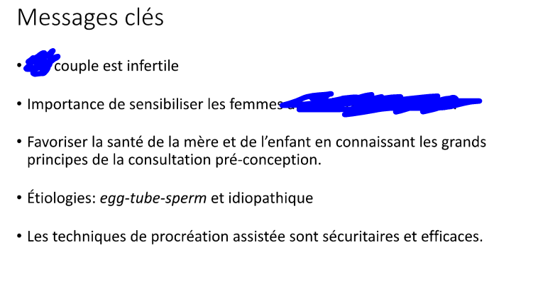 c’est quoi le truc de la prof pour se rappeler des principales raisons d’infertilité