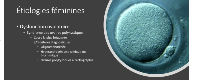 donne les 3 étiologies FÉMININES les plus prévalentes comme cause d’Infertilité