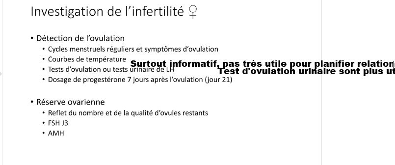 à quoi vont ressembler les test de lab à faire pour investiguer l’infertilité chez lafemme