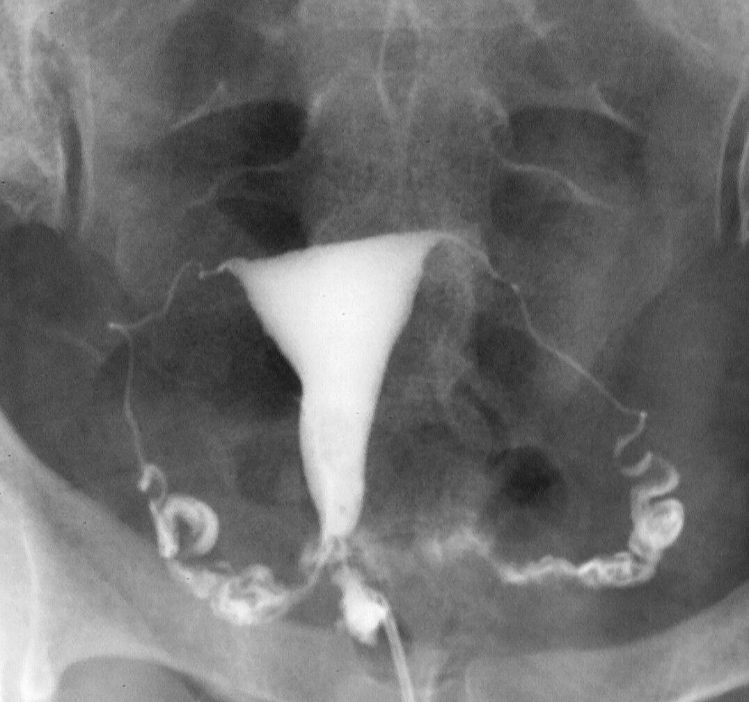 small tube inserted into cervix and an contrast medium is injected into the uterune cavity and fallopian tubes. x ray images taken which give an outline of the uterus and the tubes - seen on x ray and suggest tubal obstruction