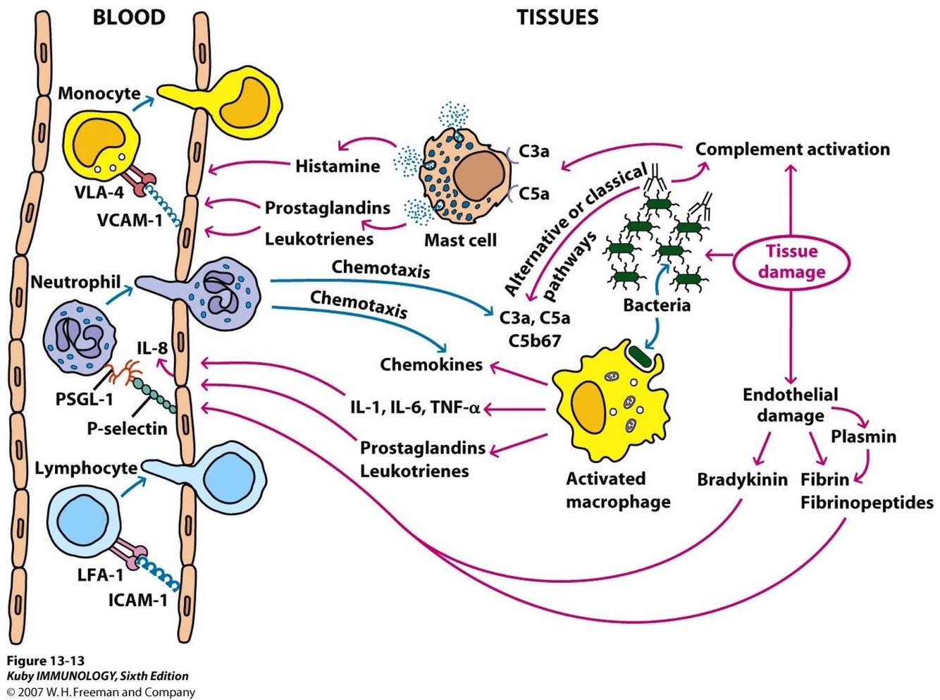 -IL1, IL6, IL8 = promote chemotaxis, induce extravasation of granulocytes & degranulation of neutrophils
