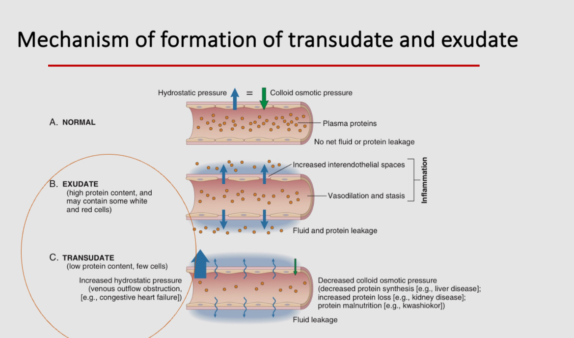 Presence of excess fluid within extra vascular space and body cavities - can be Transudate or exudate