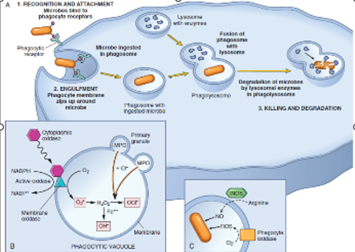 3. Dégradation du matériel ingéré : phagosome + lysosome = phagolysosomes –> dégrade/tue agent pathogene