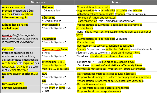 1 - Histamine et prostaglandine –> vasodilatation artérioles et lits capillaire
