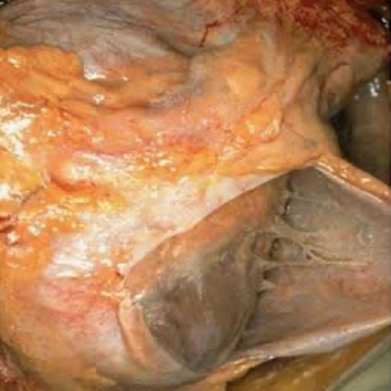Fibrinous exudate gross morphology