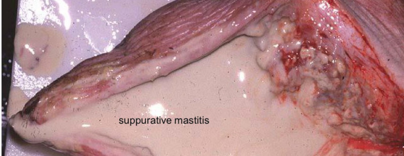 Ex. Commonly caused by bacterial infection, Suppurative mastitis