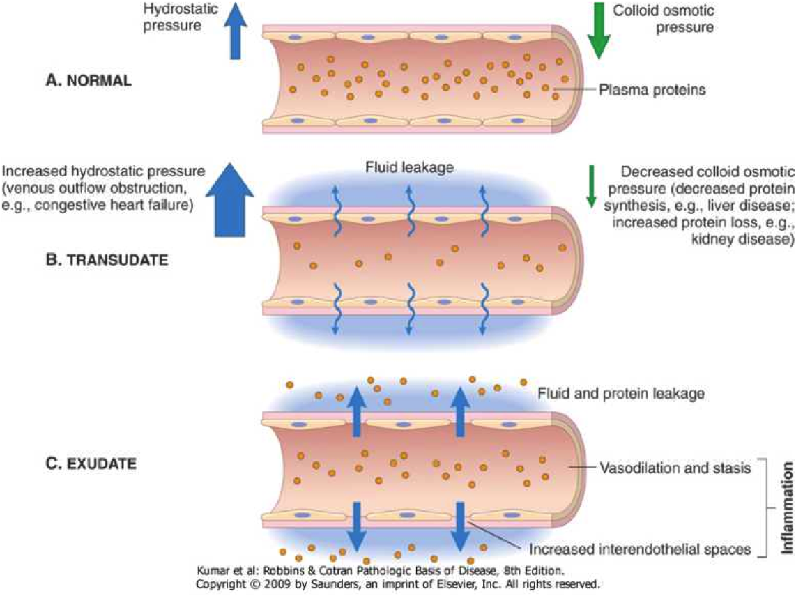 Inflammatory effusion, ie., the accumulation of fluid in tissues:
