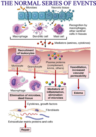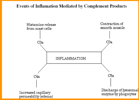 Events of inflammation mediated by complement products
