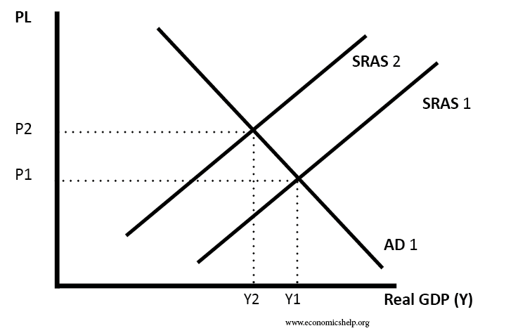 If there is an increase in the COSTS of firms, then businesses will pass this on to consumers. There will be a shift to the left in the AS.