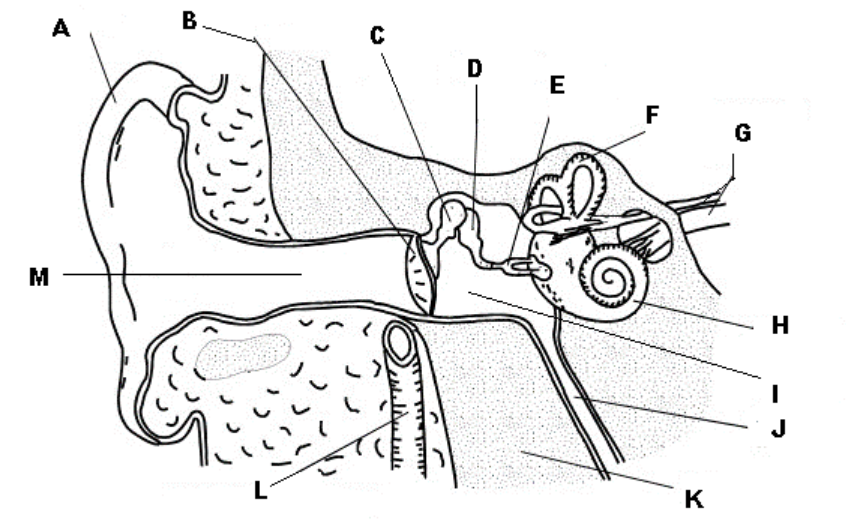 Noise damages the cochlea (Noise Induced Hearing Loss) which is H.