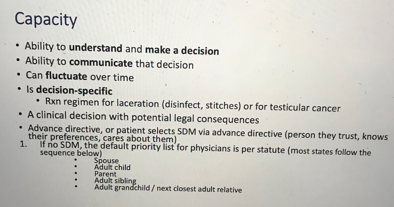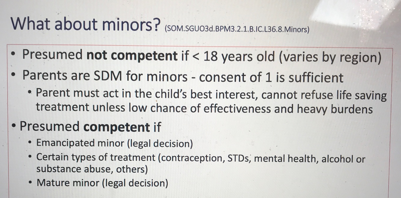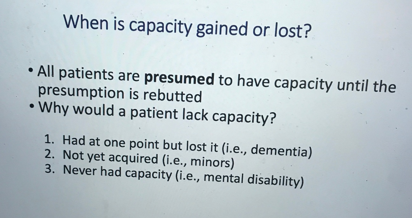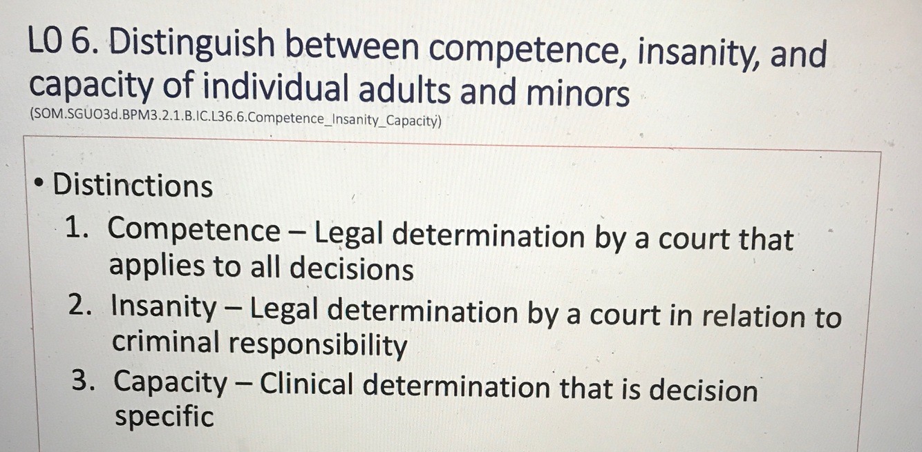 Distinguish between competence, insanity, and capacity of individual adults and minors