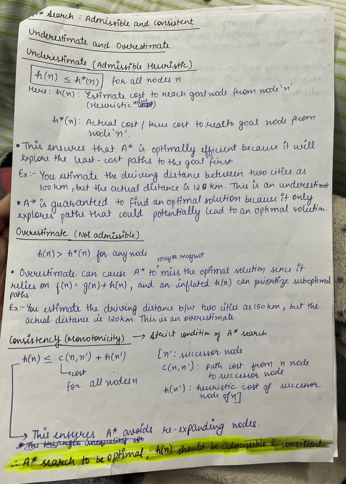 The triangle inequality conceptually resembles ‘consistency monotonicity property’ :- The direct path from n to the goal is no longer than the sum of two shorter paths from n to n’ to the goal.