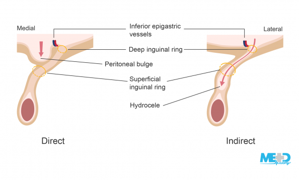 What is the gold standard way of distinguishing between DIRECT and INDIRECT inguinal hernias?