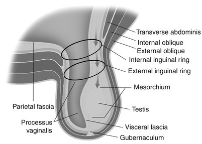 (delay in atrophy of processus vaginalis, after slower descent of right testis to scrotum during fetal development)
