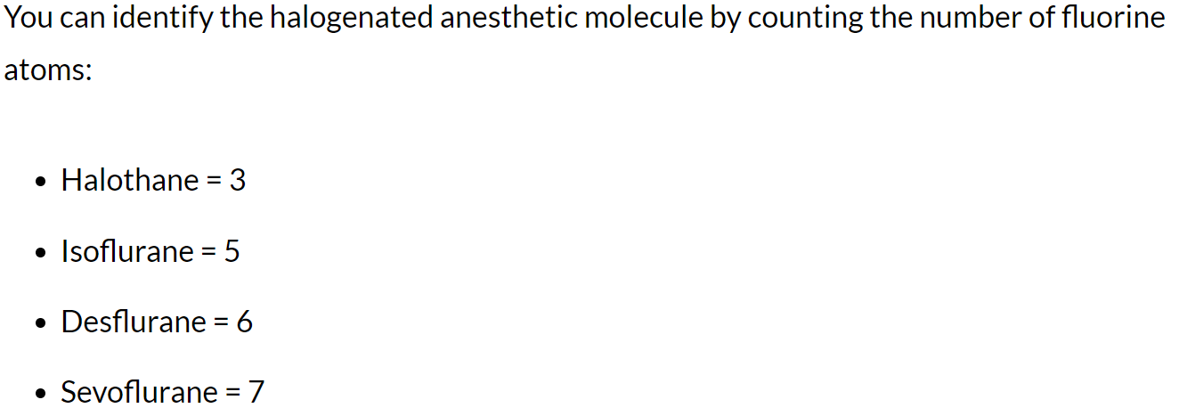 How can you identify halogenated anesthetic molecules?