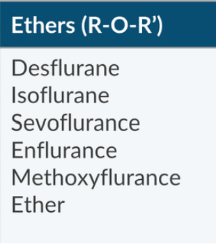List the ethers