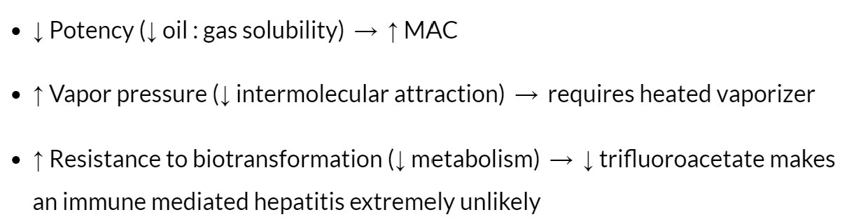 Sevo is fully fluorinated. Why is it more potent than Desflurane?