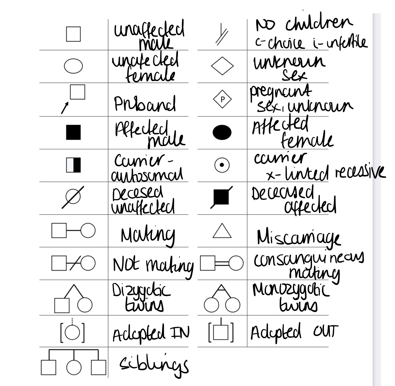 Genetic pedigree symbols…