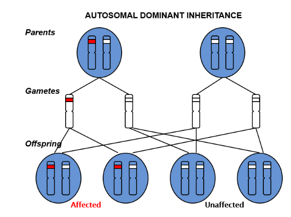 In autosomal dominant inheritance what is the risk of offspring being affeceted?