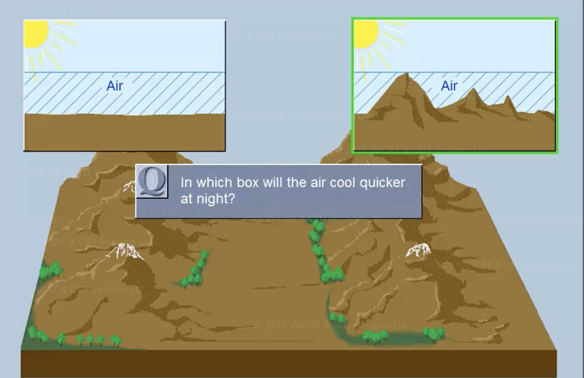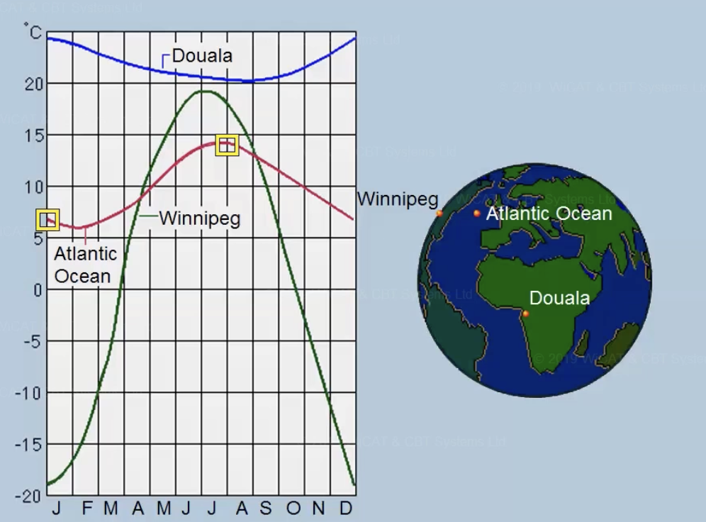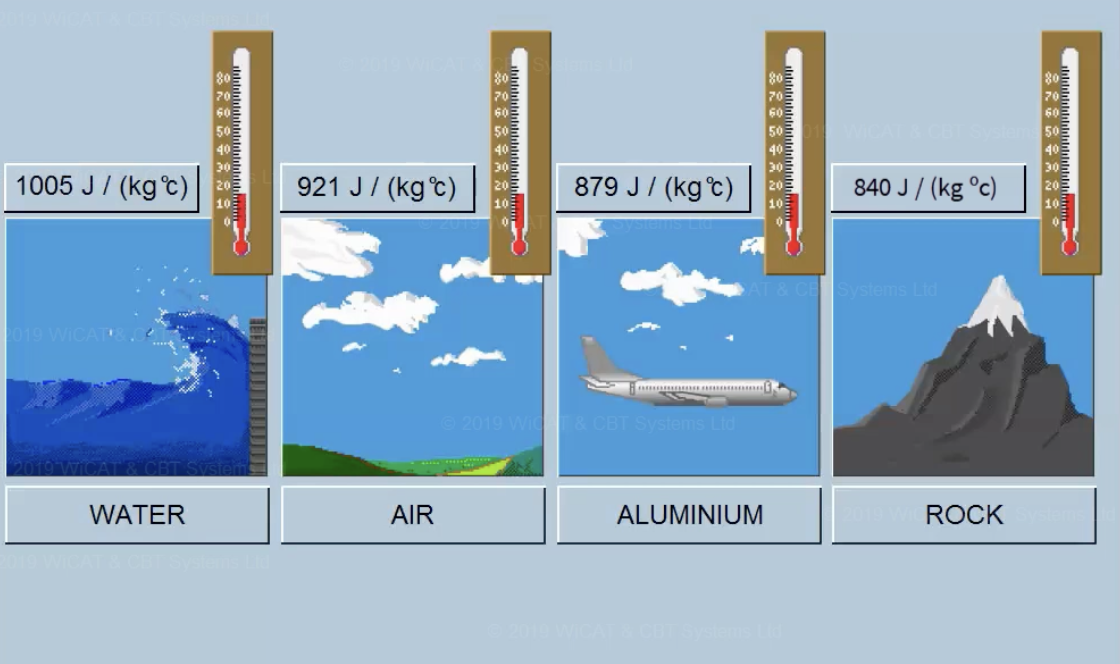 Water has a higher Specific Heat than Air, which is higher than rock